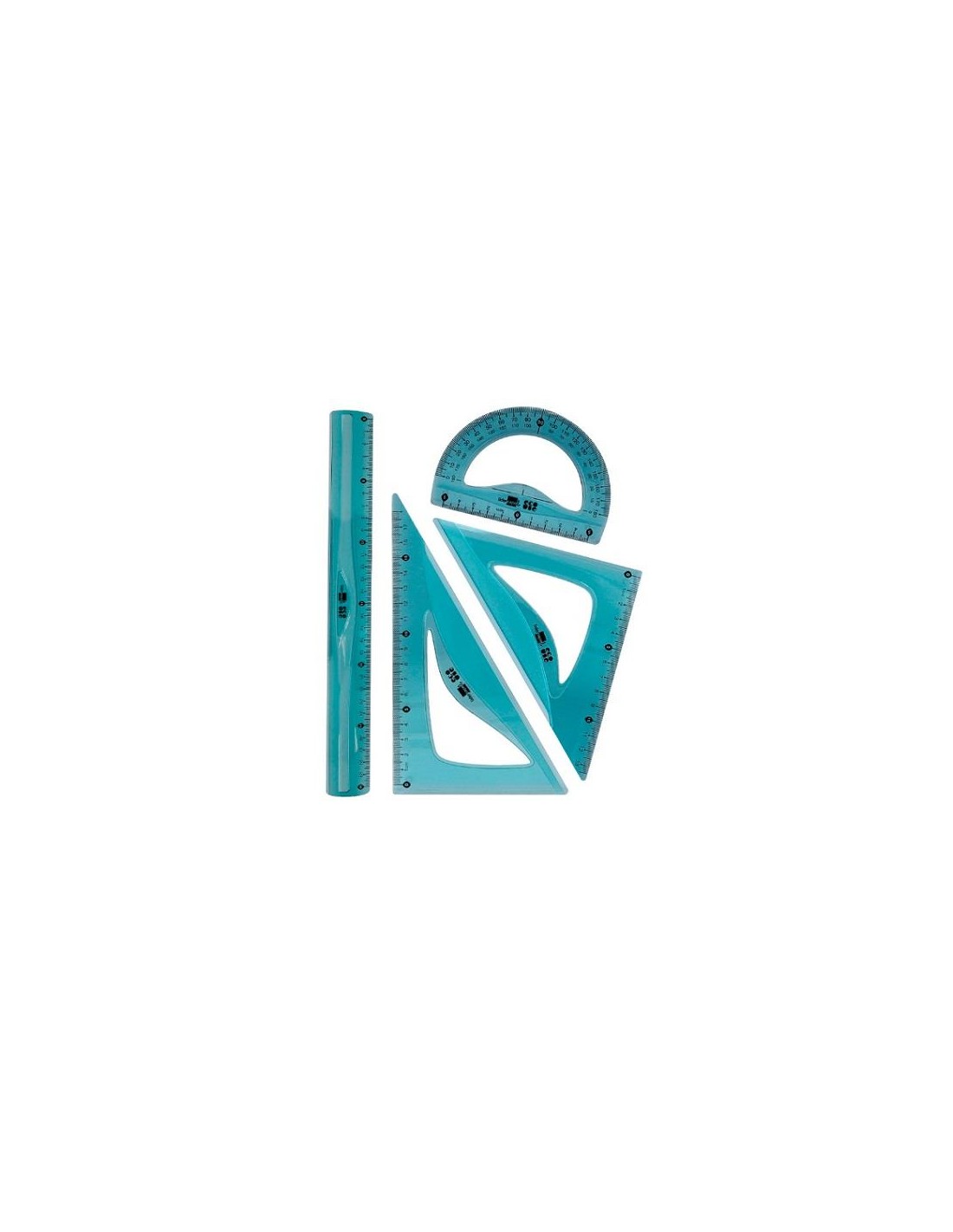 SET 4 PIEZAS ESCUADRA 10CM CARTABON 14CM REGLA 30CM Y SEMICIRCULO PLASTICO FLEXIBLE JG07 CSUR 169695